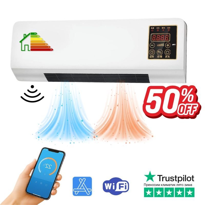 Най-тънкият и безшумен стенен конвектор на пазара с мигновено отопление и охлаждане. Отоплява и охлажда до 90 m² без външно тяло.