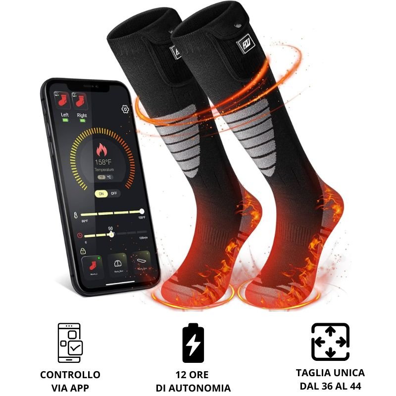 Calze Riscaldanti Unisex, per Piedi sempre Caldi e Comodi adatti per Ogni Attività, con Batteria Ricaricabile e Controllo Intelligente tramite App, lavabili in lavatrice