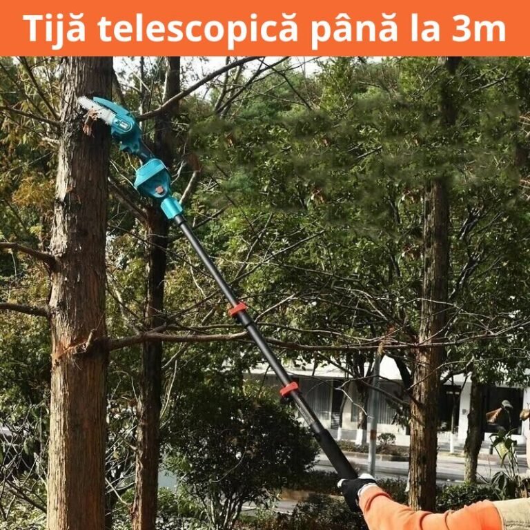 Datorită tijei reglabile de la 1,8 la 3 metri, poți ajusta lungimea în funcție de nevoile tale, ajungând la ramuri înalte sau zone îndepărtate în totală siguranță, fără a fi nevoie să folosești scări sau echipamente suplimentare. Ideală pentru întreținerea grădinii, tăierea arborilor sau curățarea gardurilor vii, această motofieră îți oferă un control impecabil și o reducere a oboselii.