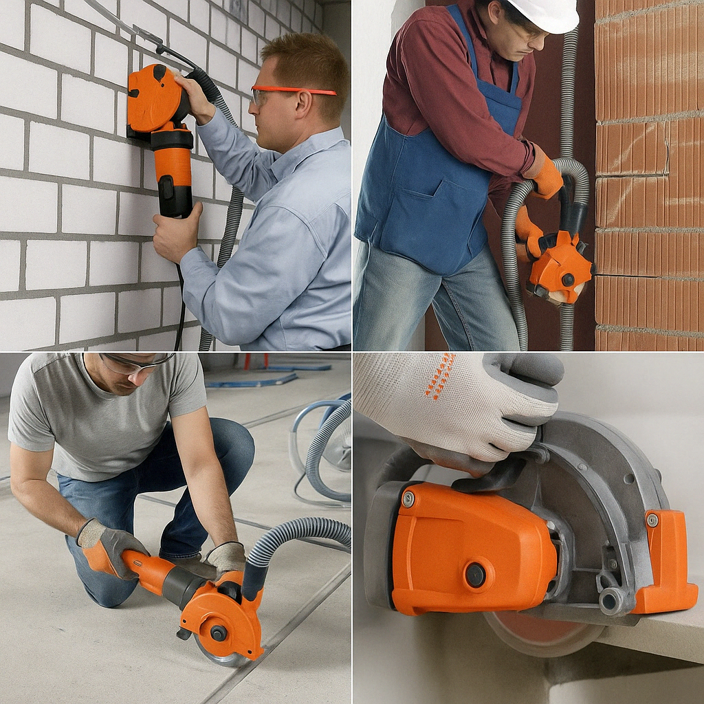Proiectat pentru a efectua tăieturi precise pe cărămizi și beton, creând canale în diverse tipuri de piatră și beton. Versatilitatea sa permite și tăieturi individuale pentru incastruri electrice. Datorită designului optimizat, tăietura centrală se separă ușor în timpul operațiunii, facilitând munca. Motorul puternic asigură performanțe stabile chiar și în tăieturile cele mai complexe.