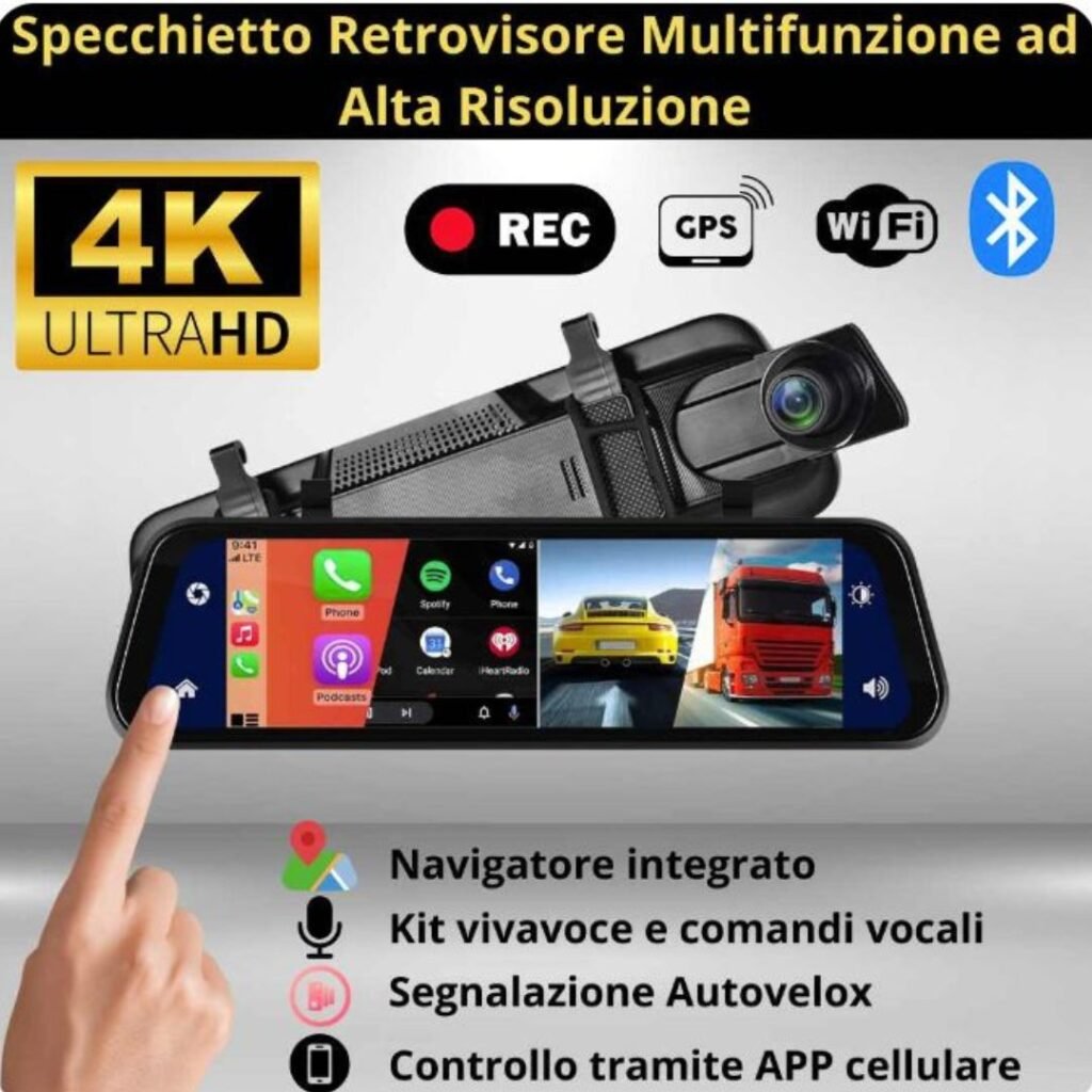 Nuovo specchietto retrovisore satellitare ad alta definizione 4K, navigatore, vivavoce e rilevatore di autovelox