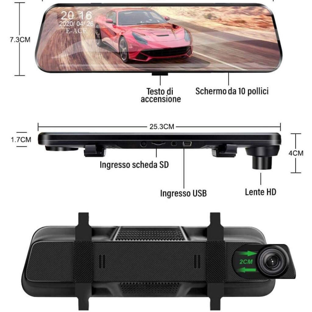Registra incidenti e furti, migliora la visuale di guida e ti assiste nel parcheggio!